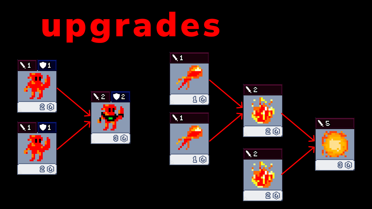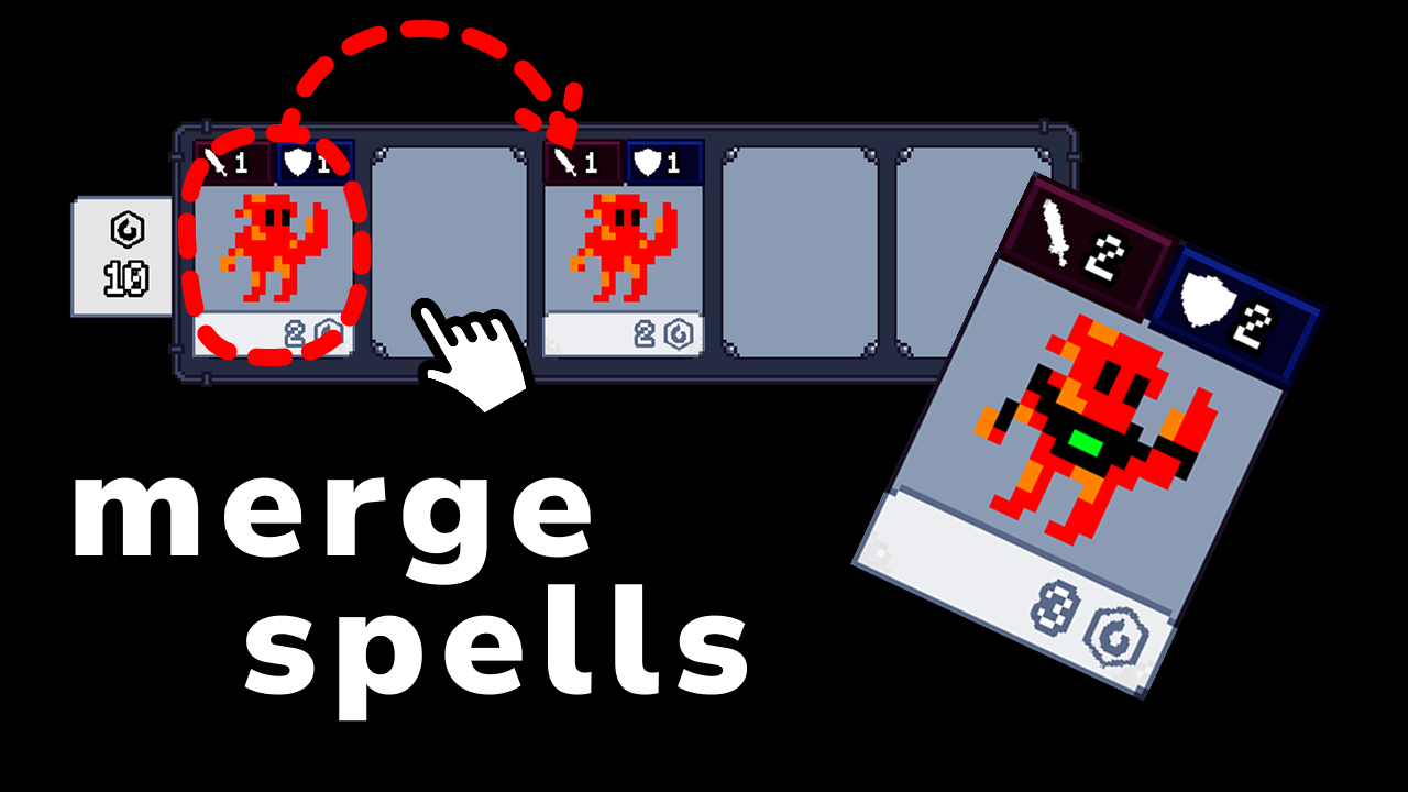 - MERGE CARDS: Another really cool thing that was added is the ability to merge two of the same card to form a stronger card. Initially, the player can merge the fire elemental to form fire elemental 2 (a very creative name). You can also merge the laser spell to form the fireball, and by merging the fireball, you form the large fireball.